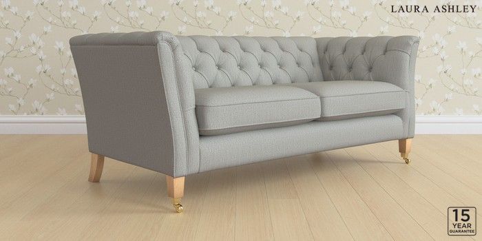 6.12.1 Buy Chatsworth Button Back by Laura Ashley 3 Seater Small Sofa Edwin Herringbone Pale Steel Grey Straight Brass Castor - Light Oak from the Next UK online shop Click here to use our accessible website
