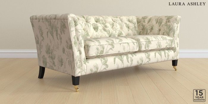 6.12.1 Buy Chatsworth Button Back by Laura Ashley 3 Seater Small Sofa Gosford Weave Sage Green Straight Brass Castor - Black from the Next UK online shop Click here to use our accessible website