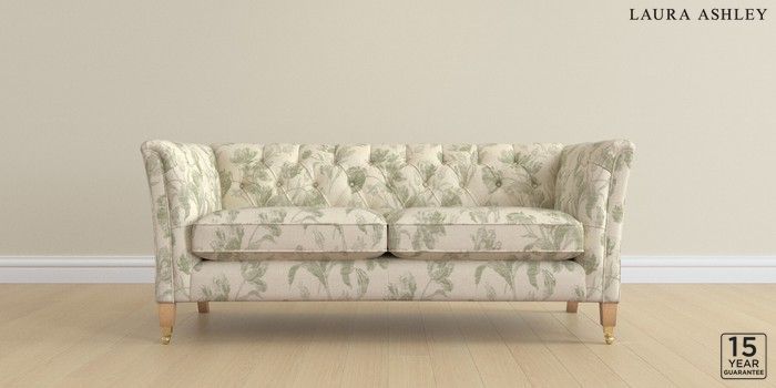 6.12.1 Buy Chatsworth Button Back by Laura Ashley 3 Seater Small Sofa Gosford Weave Sage Green Straight Brass Castor - Light Oak from the Next UK online shop Click here to use our accessible website