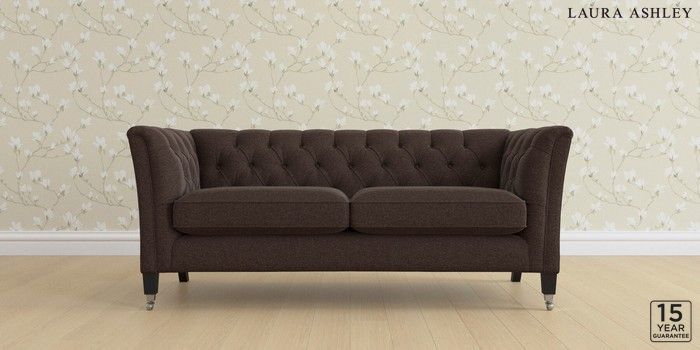 6.12.1 Buy Chatsworth Button Back by Laura Ashley 3 Seater Small Sofa Harley Chestnut Brown Straight Chrome Castor - Black from the Next UK online shop Click here to use our accessible website