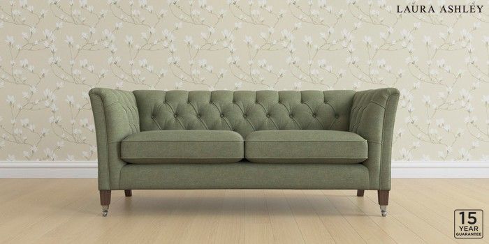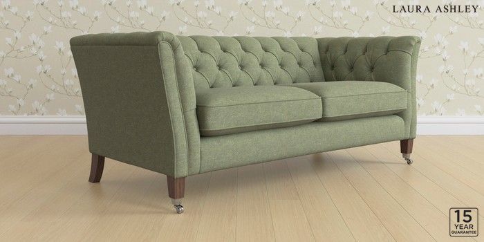 6.12.1 Buy Chatsworth Button Back by Laura Ashley 3 Seater Small Sofa Harley Moss Green Straight Chrome Castor - Chestnut from the Next UK online shop Click here to use our accessible website