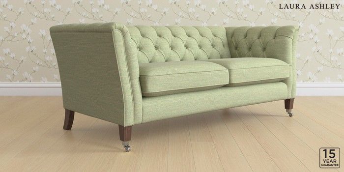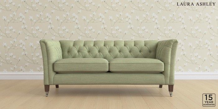 6.12.13 Buy Chatsworth Button Back by Laura Ashley 3 Seater Small Sofa Kinsham Hedgerow Green Straight Chrome Castor - Chestnut from the Next UK online shop Click here to use our accessible website