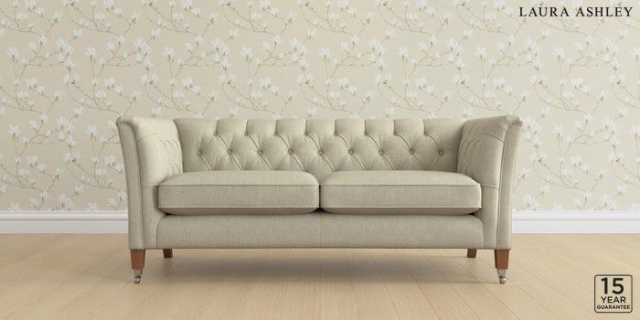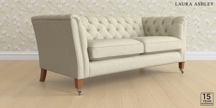 6.12.13 Buy Chatsworth Button Back by Laura Ashley 3 Seater Small Sofa Kinsham Natural Straight Chrome Castor - Teak from the Next UK online shop Click here to use our accessible website