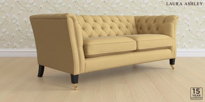 6.12.1 Buy Chatsworth Button Back by Laura Ashley 3 Seater Small Sofa Kinsham Ochre Yellow Straight Brass Castor - Black from the Next UK online shop Click here to use our accessible website