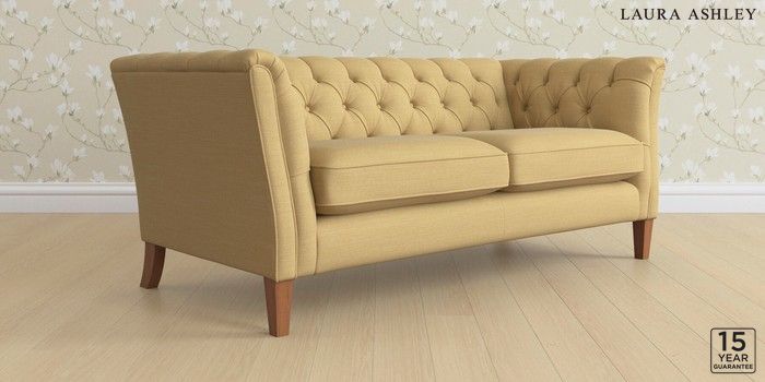 6.12.1 Buy Chatsworth Button Back by Laura Ashley 3 Seater Small Sofa Kinsham Ochre Yellow Straight Mid - Teak from the Next UK online shop Click here to use our accessible website