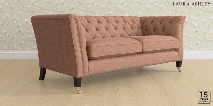 6.12.13 Buy Chatsworth Button Back by Laura Ashley 3 Seater Small Sofa Kinsham Rust Orange Straight Brass Castor - Black from the Next UK online shop Click here to use our accessible website
