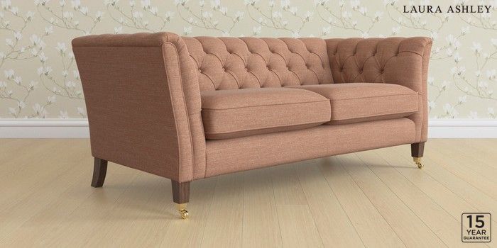 6.12.13 Buy Chatsworth Button Back by Laura Ashley 3 Seater Small Sofa Kinsham Rust Orange Straight Brass Castor - Chestnut from the Next UK online shop Click here to use our accessible website