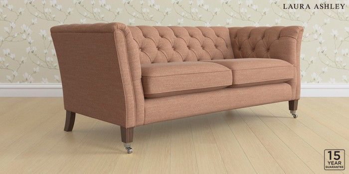 6.12.13 Buy Chatsworth Button Back by Laura Ashley 3 Seater Small Sofa Kinsham Rust Orange Straight Chrome Castor - Chestnut from the Next UK online shop Click here to use our accessible website