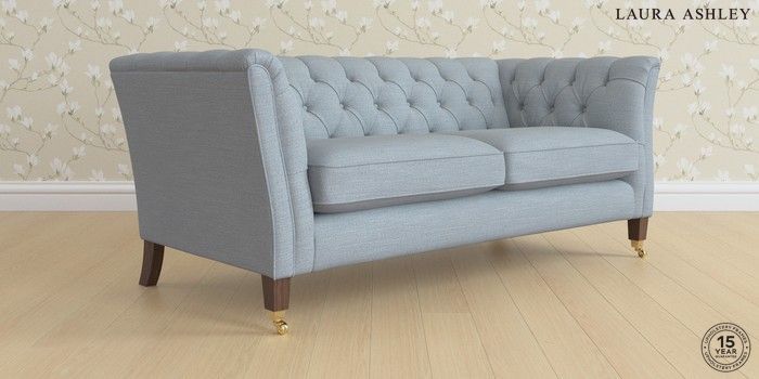 6.12.1 Buy Chatsworth Button Back by Laura Ashley 3 Seater Small Sofa Kinsham Seaspray Blue Straight Brass Castor - Chestnut from the Next UK online shop Click here to use our accessible website