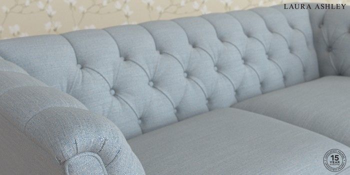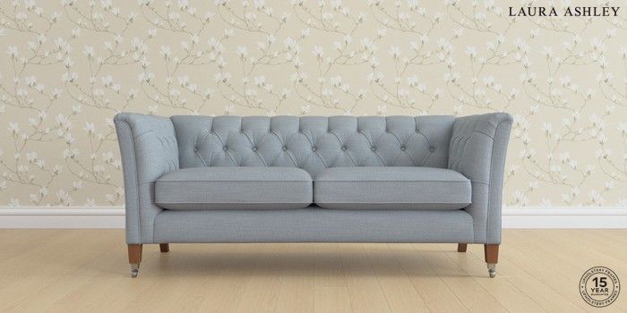 6.12.1 Buy Chatsworth Button Back by Laura Ashley 3 Seater Small Sofa Kinsham Seaspray Blue Straight Chrome Castor - Teak from the Next UK online shop Click here to use our accessible website