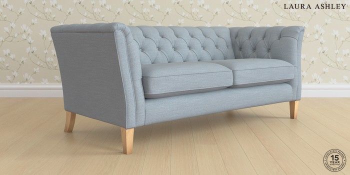 6.12.1 Buy Chatsworth Button Back by Laura Ashley 3 Seater Small Sofa Kinsham Seaspray Blue Straight Mid - Light Oak from the Next UK online shop Click here to use our accessible website