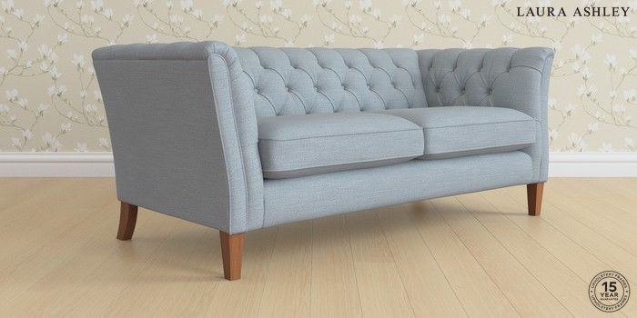 6.12.1 Buy Chatsworth Button Back by Laura Ashley 3 Seater Small Sofa Kinsham Seaspray Blue Straight Mid - Teak from the Next UK online shop Click here to use our accessible website