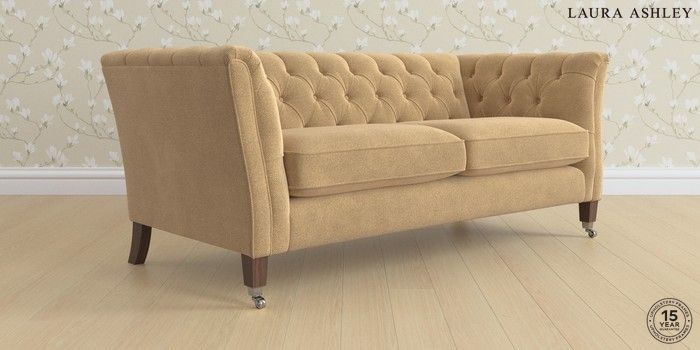 6.12.1 Buy Chatsworth Button Back by Laura Ashley 3 Seater Small Sofa Lundar Chenille Caramel Natural Straight Chrome Castor - Chestnut from the Next UK online shop Click here to use our accessible website