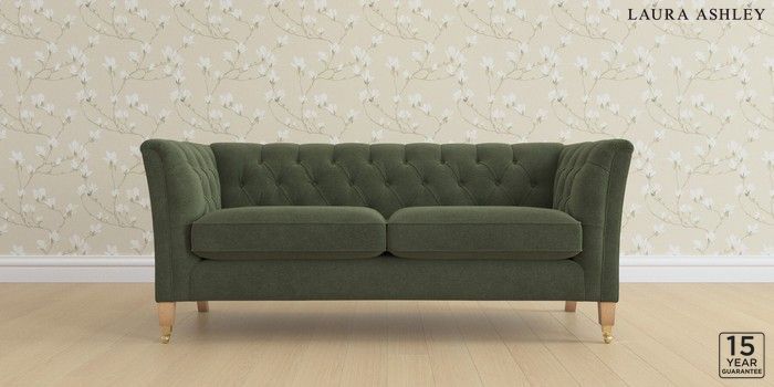 6.12.1 Buy Chatsworth Button Back by Laura Ashley 3 Seater Small Sofa Lundar Chenille Ivy Green Straight Brass Castor - Light Oak from the Next UK online shop Click here to use our accessible website