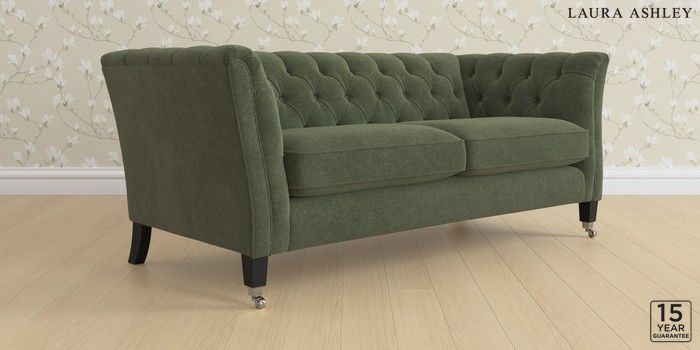 6.12.13 Buy Chatsworth Button Back by Laura Ashley 3 Seater Small Sofa Lundar Chenille Ivy Green Straight Chrome Castor - Black from the Next UK online shop Click here to use our accessible website