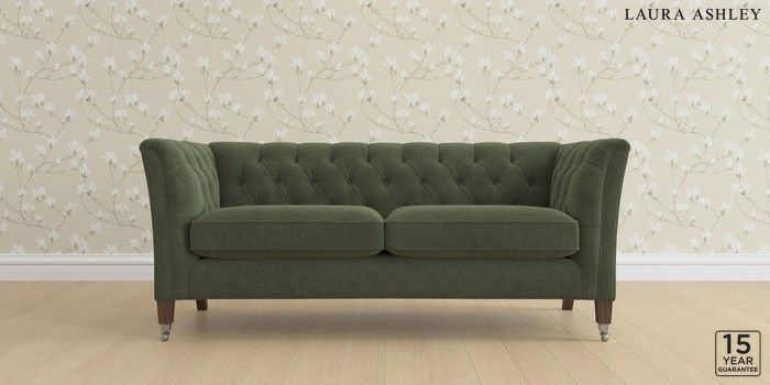 6.12.13 Buy Chatsworth Button Back by Laura Ashley 3 Seater Small Sofa Lundar Chenille Ivy Green Straight Chrome Castor - Chestnut from the Next UK online shop Click here to use our accessible website