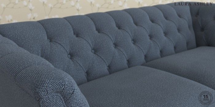 6.12.1 Buy Chatsworth Button Back by Laura Ashley 3 Seater Small Sofa Lundar Chenille Navy Blue Straight Chrome Castor - Light Oak from the Next UK online shop Click here to use our accessible website