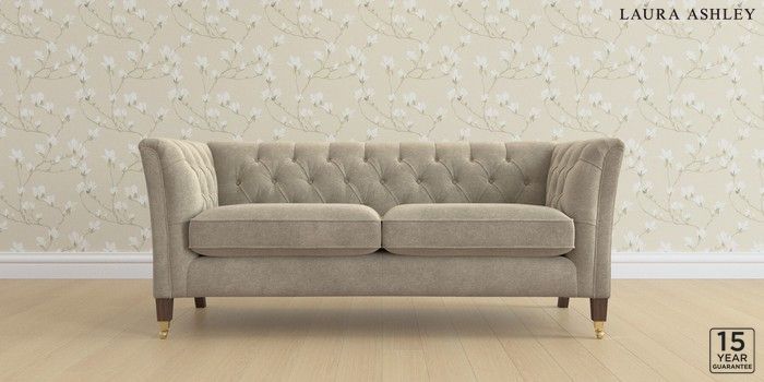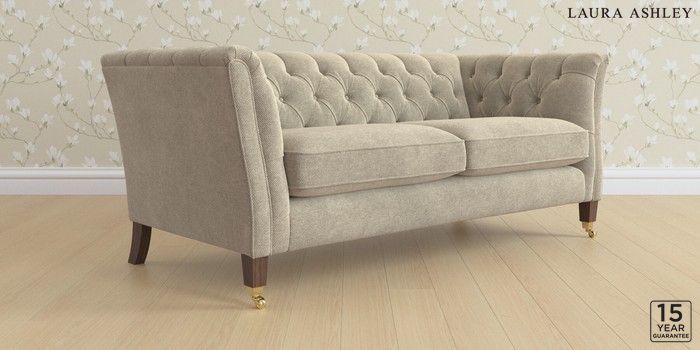 6.12.13 Buy Chatsworth Button Back by Laura Ashley 3 Seater Small Sofa Lundar Chenille Truffle Natural Straight Brass Castor - Chestnut from the Next UK online shop Click here to use our accessible website