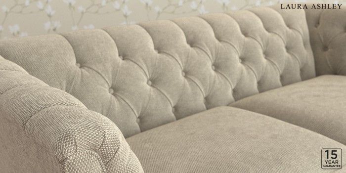 6.12.13 Buy Chatsworth Button Back by Laura Ashley 3 Seater Small Sofa Lundar Chenille Truffle Natural Straight Chrome Castor - Teak from the Next UK online shop Click here to use our accessible website