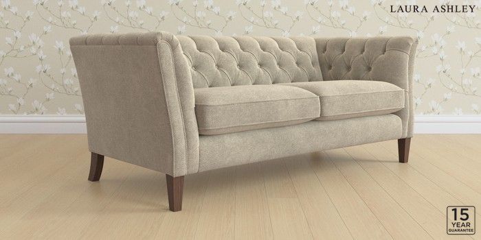 6.12.13 Buy Chatsworth Button Back by Laura Ashley 3 Seater Small Sofa Lundar Chenille Truffle Natural Straight Mid - Chestnut from the Next UK online shop Click here to use our accessible website