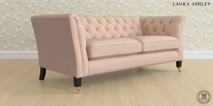 6.12.1 Buy Chatsworth Button Back by Laura Ashley 3 Seater Small Sofa Melbreak Geo Chalk Pink Straight Brass Castor - Black from the Next UK online shop Click here to use our accessible website