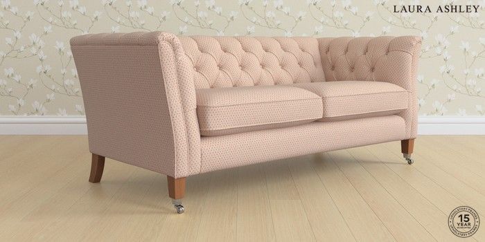 6.12.1 Buy Chatsworth Button Back by Laura Ashley 3 Seater Small Sofa Melbreak Geo Chalk Pink Straight Chrome Castor - Teak from the Next UK online shop Click here to use our accessible website