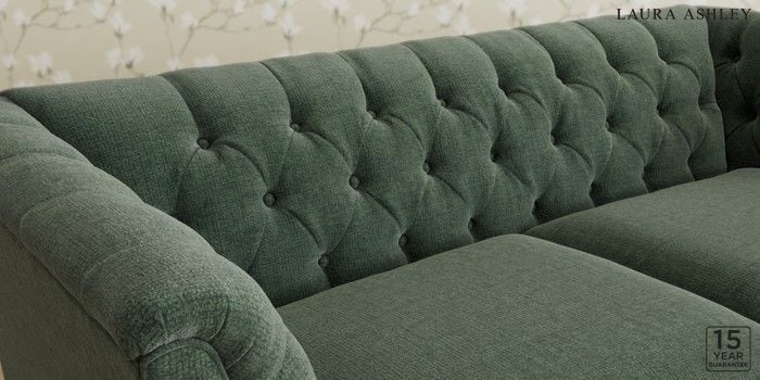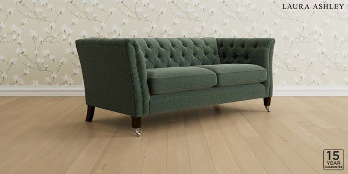 6.12.13 Buy Chatsworth Button Back by Laura Ashley 3 Seater Small Sofa Nantmor Fern Green Straight Chrome Castor - Chestnut from the Next UK online shop Click here to use our accessible website