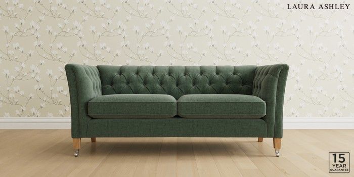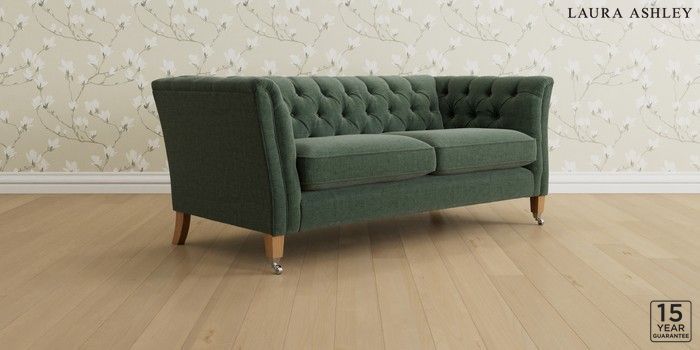 6.12.13 Buy Chatsworth Button Back by Laura Ashley 3 Seater Small Sofa Nantmor Fern Green Straight Chrome Castor - Light Oak from the Next UK online shop Click here to use our accessible website