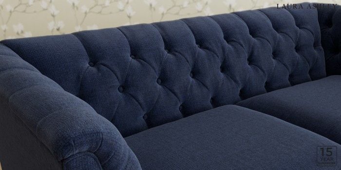 6.12.1 Buy Chatsworth Button Back by Laura Ashley 3 Seater Small Sofa Nantmor Midnight Navy Straight Brass Castor - Black from the Next UK online shop Click here to use our accessible website