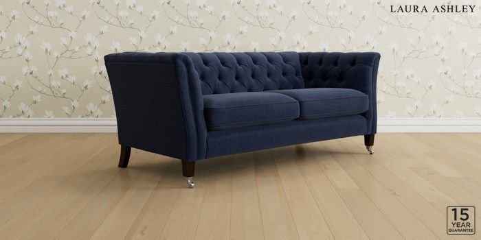 6.12.13 Buy Chatsworth Button Back by Laura Ashley 3 Seater Small Sofa Nantmor Midnight Navy Straight Chrome Castor - Chestnut from the Next UK online shop Click here to use our accessible website