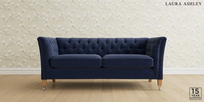 6.12.13 Buy Chatsworth Button Back by Laura Ashley 3 Seater Small Sofa Nantmor Midnight Navy Straight Chrome Castor - Light Oak from the Next UK online shop Click here to use our accessible website