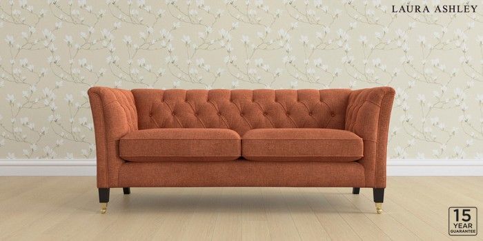 6.12.1 Buy Chatsworth Button Back by Laura Ashley 3 Seater Small Sofa Nantmor Rust Orange Straight Brass Castor - Black from the Next UK online shop Click here to use our accessible website