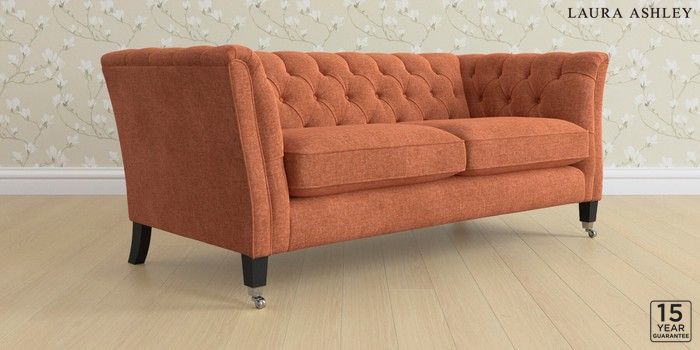 6.12.13 Buy Chatsworth Button Back by Laura Ashley 3 Seater Small Sofa Nantmor Rust Orange Straight Chrome Castor - Black from the Next UK online shop Click here to use our accessible website