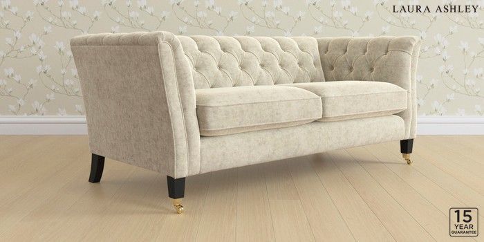 6.12.1 Buy Chatsworth Button Back by Laura Ashley 3 Seater Small Sofa Nantmor Truffle Natural Straight Brass Castor - Black from the Next UK online shop Click here to use our accessible website
