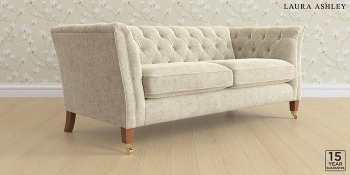 6.12.1 Buy Chatsworth Button Back by Laura Ashley 3 Seater Small Sofa Nantmor Truffle Natural Straight Brass Castor - Teak from the Next UK online shop Click here to use our accessible website