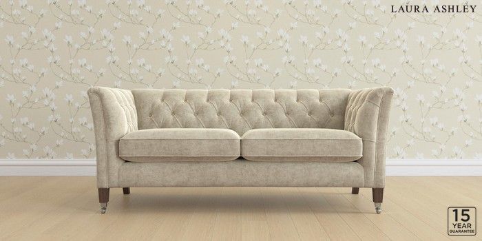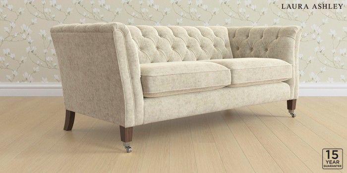6.12.13 Buy Chatsworth Button Back by Laura Ashley 3 Seater Small Sofa Nantmor Truffle Natural Straight Chrome Castor - Chestnut from the Next UK online shop Click here to use our accessible website