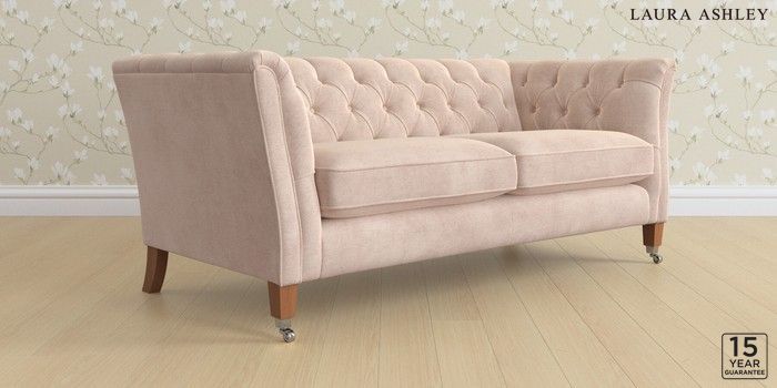 6.12.13 Buy Chatsworth Button Back by Laura Ashley 3 Seater Small Sofa Orla Chalk Pink Straight Chrome Castor - Teak from the Next UK online shop Click here to use our accessible website