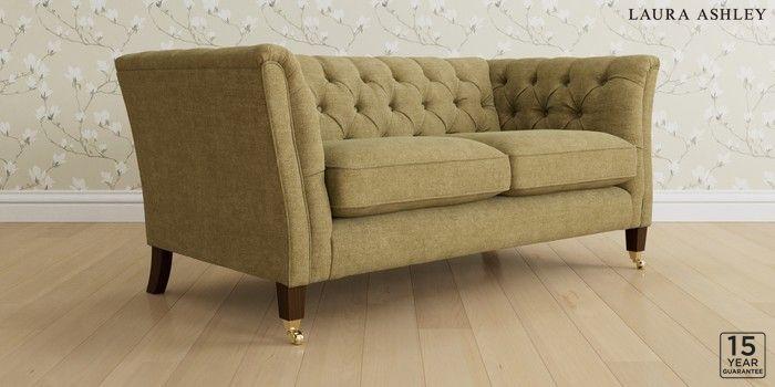 6.12.1 Buy Chatsworth Button Back by Laura Ashley 3 Seater Small Sofa Orla Gold Natural Straight Brass Castor - Chestnut from the Next UK online shop Click here to use our accessible website