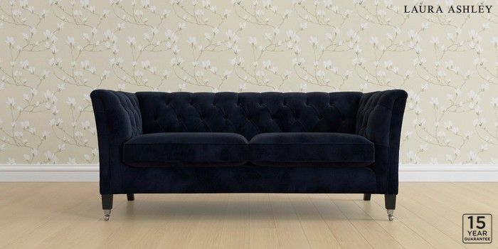 6.12.13 Buy Chatsworth Button Back by Laura Ashley 3 Seater Small Sofa Orla Midnight Navy Straight Chrome Castor - Black from the Next UK online shop Click here to use our accessible website