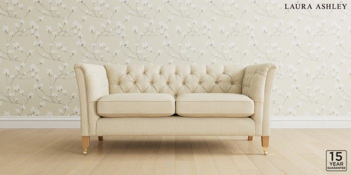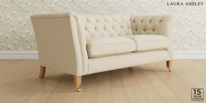 6.12.1 Buy Chatsworth Button Back by Laura Ashley 3 Seater Small Sofa Orla Oyster Natural Straight Brass Castor - Light Oak from the Next UK online shop Click here to use our accessible website