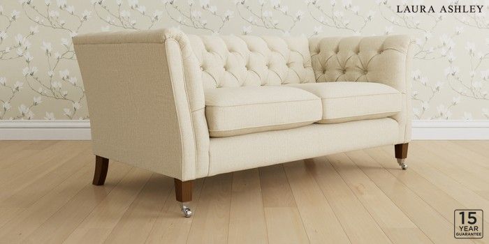 6.12.1 Buy Chatsworth Button Back by Laura Ashley 3 Seater Small Sofa Orla Oyster Natural Straight Chrome Castor - Teak from the Next UK online shop Click here to use our accessible website