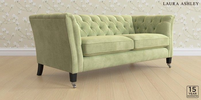 6.12.13 Buy Chatsworth Button Back by Laura Ashley 3 Seater Small Sofa Orla Pale Hedgerow Green Straight Chrome Castor - Black from the Next UK online shop Click here to use our accessible website
