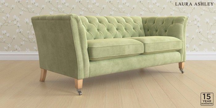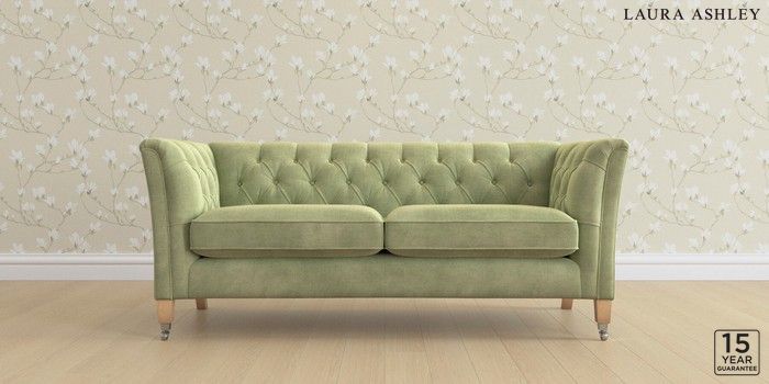 6.12.13 Buy Chatsworth Button Back by Laura Ashley 3 Seater Small Sofa Orla Pale Hedgerow Green Straight Chrome Castor - Light Oak from the Next UK online shop Click here to use our accessible website