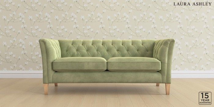 6.12.13 Buy Chatsworth Button Back by Laura Ashley 3 Seater Small Sofa Orla Pale Hedgerow Green Straight Mid - Light Oak from the Next UK online shop Click here to use our accessible website