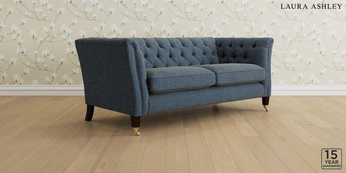 6.12.13 Buy Chatsworth Button Back by Laura Ashley 3 Seater Small Sofa Orla Seaspray Blue Straight Brass Castor - Chestnut from the Next UK online shop Click here to use our accessible website