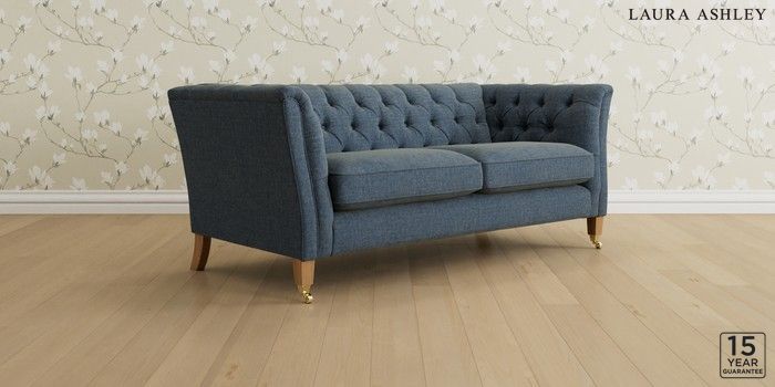 6.12.1 Buy Chatsworth Button Back by Laura Ashley 3 Seater Small Sofa Orla Seaspray Blue Straight Brass Castor - Light Oak from the Next UK online shop Click here to use our accessible website
