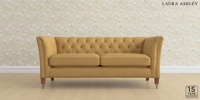 6.12.13 Buy Chatsworth Button Back by Laura Ashley 3 Seater Small Sofa Peyton Ochre Yellow Straight Chrome Castor - Teak from the Next UK online shop Click here to use our accessible website