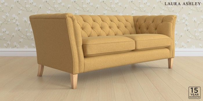 6.12.13 Buy Chatsworth Button Back by Laura Ashley 3 Seater Small Sofa Peyton Ochre Yellow Straight Mid - Light Oak from the Next UK online shop Click here to use our accessible website