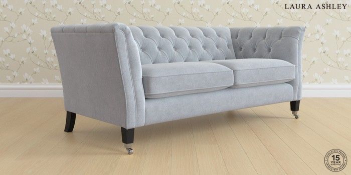 6.12.1 Buy Chatsworth Button Back by Laura Ashley 3 Seater Small Sofa Peyton Powder Blue Straight Chrome Castor - Black from the Next UK online shop Click here to use our accessible website