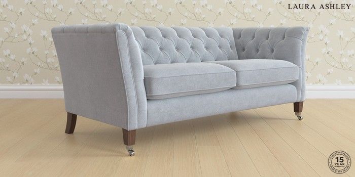 6.12.1 Buy Chatsworth Button Back by Laura Ashley 3 Seater Small Sofa Peyton Powder Blue Straight Chrome Castor - Chestnut from the Next UK online shop Click here to use our accessible website
